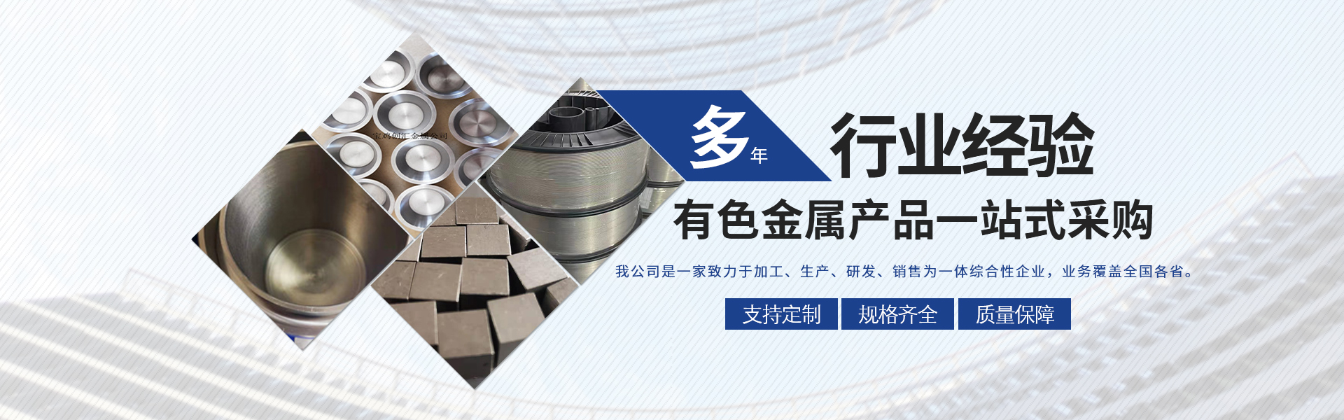 寶雞市創(chuàng)匯金屬材料有限公司,位于有“中國鈦谷”之稱寶雞寶鈦路南段,這里也是國家重點支持和扶持的有色金屬材料資源產業基地,我司專業從事鈦、鋯、鉿、鎳鉻、鎢鉬、鉭鈮、合金材料、復合材料,板、棒、絲、管、箔材等,設備制造,金屬制品機械加工銷售。